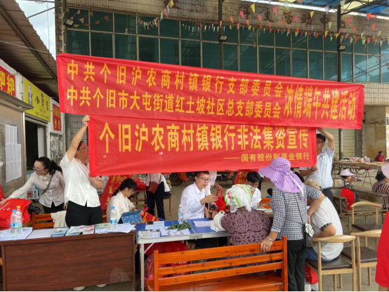 为进一步提高消费者金融知识水平和金融风险防范意识,有效维护消费者的合法权益,在6月7日端午节来临之际,个旧沪农商村镇银行走进社区开展以“加强风险防范,暖心金融服务”为主题的普及金融知识万里行暨防范非法集资宣传月活动。